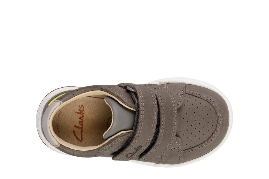 These sports casual shoes from Clarks are crafted from a brown leather features mustard coloured accents and micro perforations. The double riptape fastening provides a secure fit whilst allowing for easy on and off. With flex grooves in the durable sole unit, these shoes are incredibly lightweight and perfect for everyday wear. Available in whole and half sizes and different widths. UPPER MATERIAL Leather. LINING MATERIAL Textile. SOLE MATERIAL Mixed. FASTENING TYPE Riptape. REMOVABLE INSOLE No