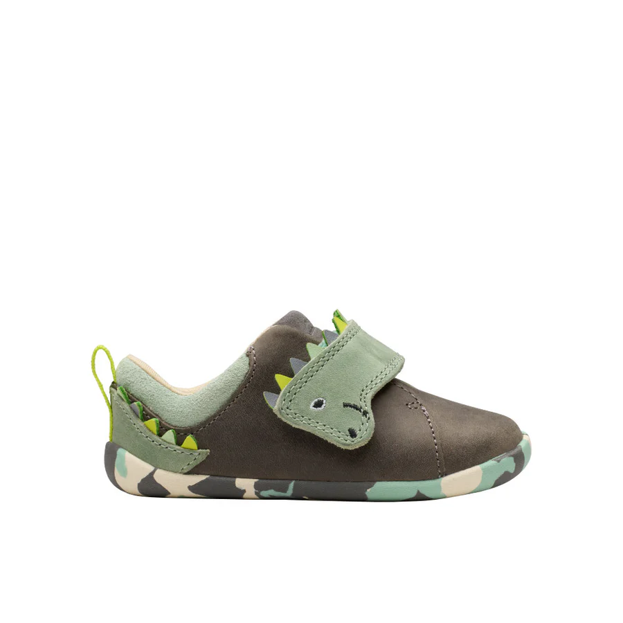 Clarks Roald Dahl Flashsnap Boys Shoe-Khaki Print F