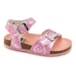 These cute girls sandals from Pablosky come with a subtle print along with adjustable buckles for a secure fit. The highly flexible and absorbent insole provides comfort while the rubber sole gives grip. Perfect for summer days. Uppers: Manmade. Lining: Textile. Sole: Manmade.