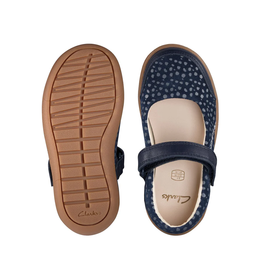 Everyday style doesn?t have to be ordinary. Thanks to the comfortable leather sock, grippy rubber outsole and ballet-cut upper that sits perfectly on the foot, these shoes from Clarks allow active feet to move, breathe and flex. A comfortable style for life?s adventures. Finished with a secure riptape fastening. Upper Material Leather. Lining Material Synthetic. Sole Material Rubber. Fastening Type Riptape. Removable Insole No